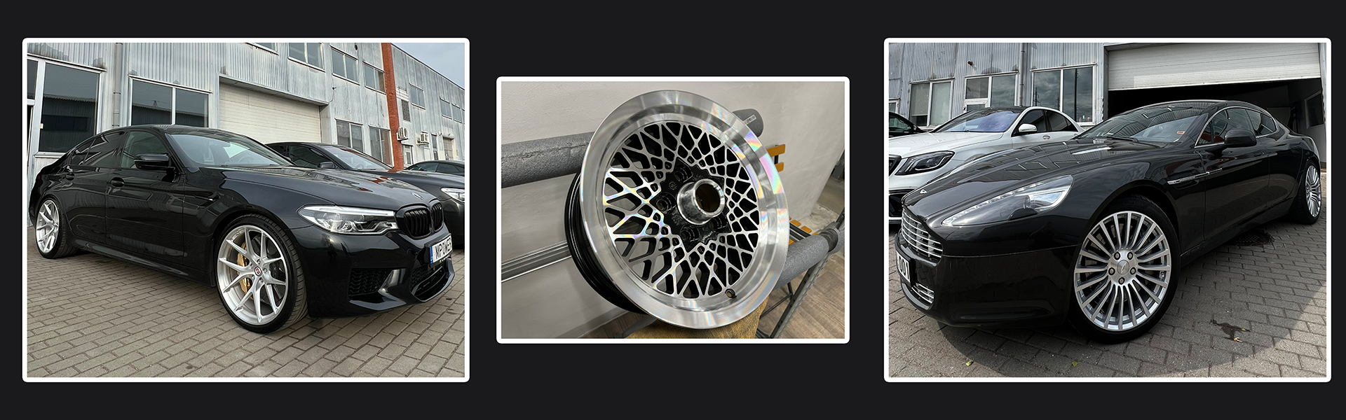 Complete alloy wheel restoration including paint removal, refinishing, CNC diamond cutting, straightening, and welding for damaged or bent rims.